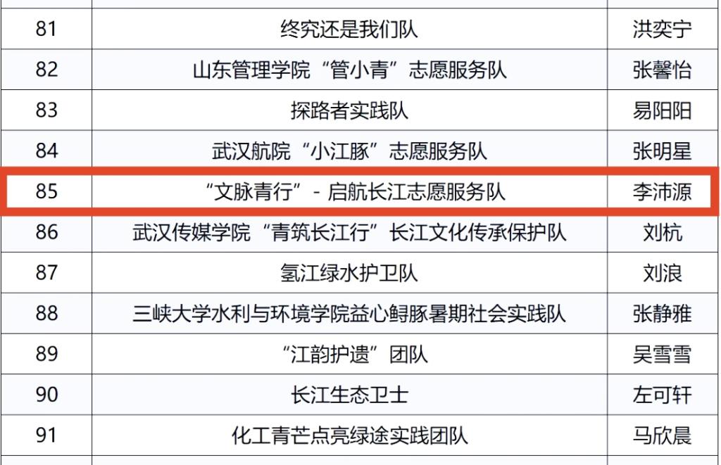 由共青团中央青年发展部、共青团湖北省委的工作指导,共青团中国地质大学(武汉)委员会在全国范围组织开展了“绿色长江 青春护航”专项活动。公司启航志愿服务队成功入选。