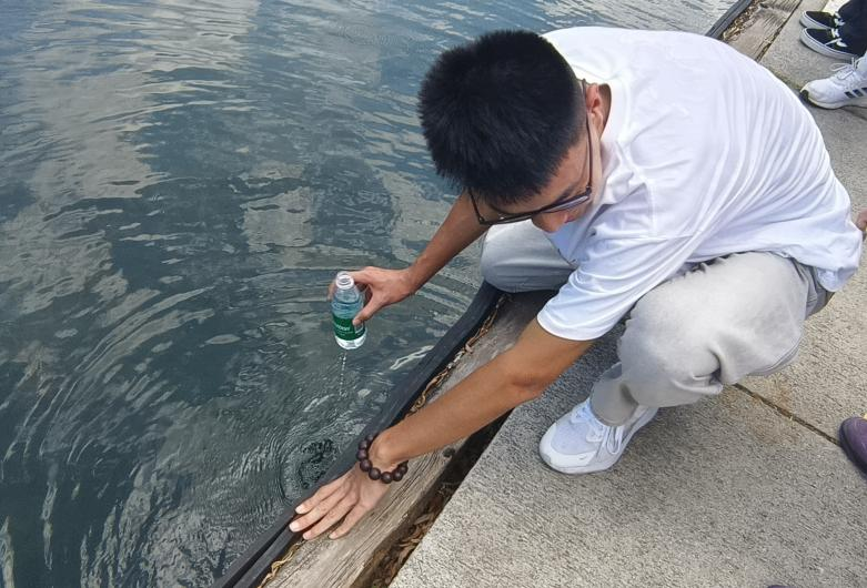 团队成员来到大明湖护城河,志愿者们携带检测工具沿河岸开展水质调查。他们选取不同监测点,现场检测水温、pH值等指标“以前只见过泉水喷涌,今天第一次用数据给泉水‘把脉’。”他们选取不同监测点,记录水样状态并观察河岸环境,重点关注植被覆盖、漂浮物及排污口情况,还与环卫工人交流日常维护经验,直观了解“泉城血脉”的生态保护现状。