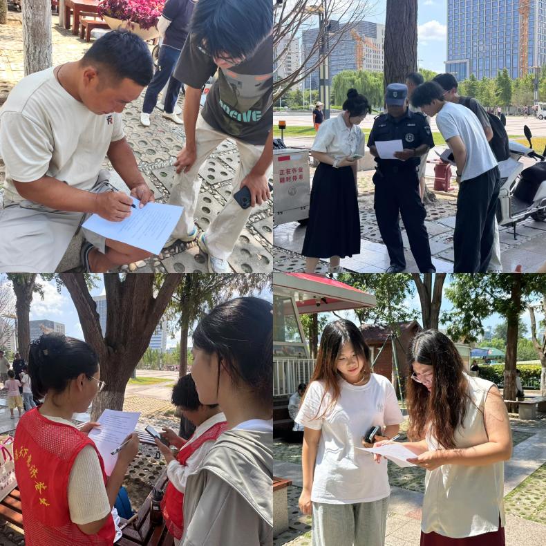 在泉城广场,志愿者们分四组向市民、游客发放“泉水保护与城市发展”问卷,同步赠送原创《泉水文化手册》。问卷设置满意度、改进建议等10项指标,累计回收有效问卷327份。