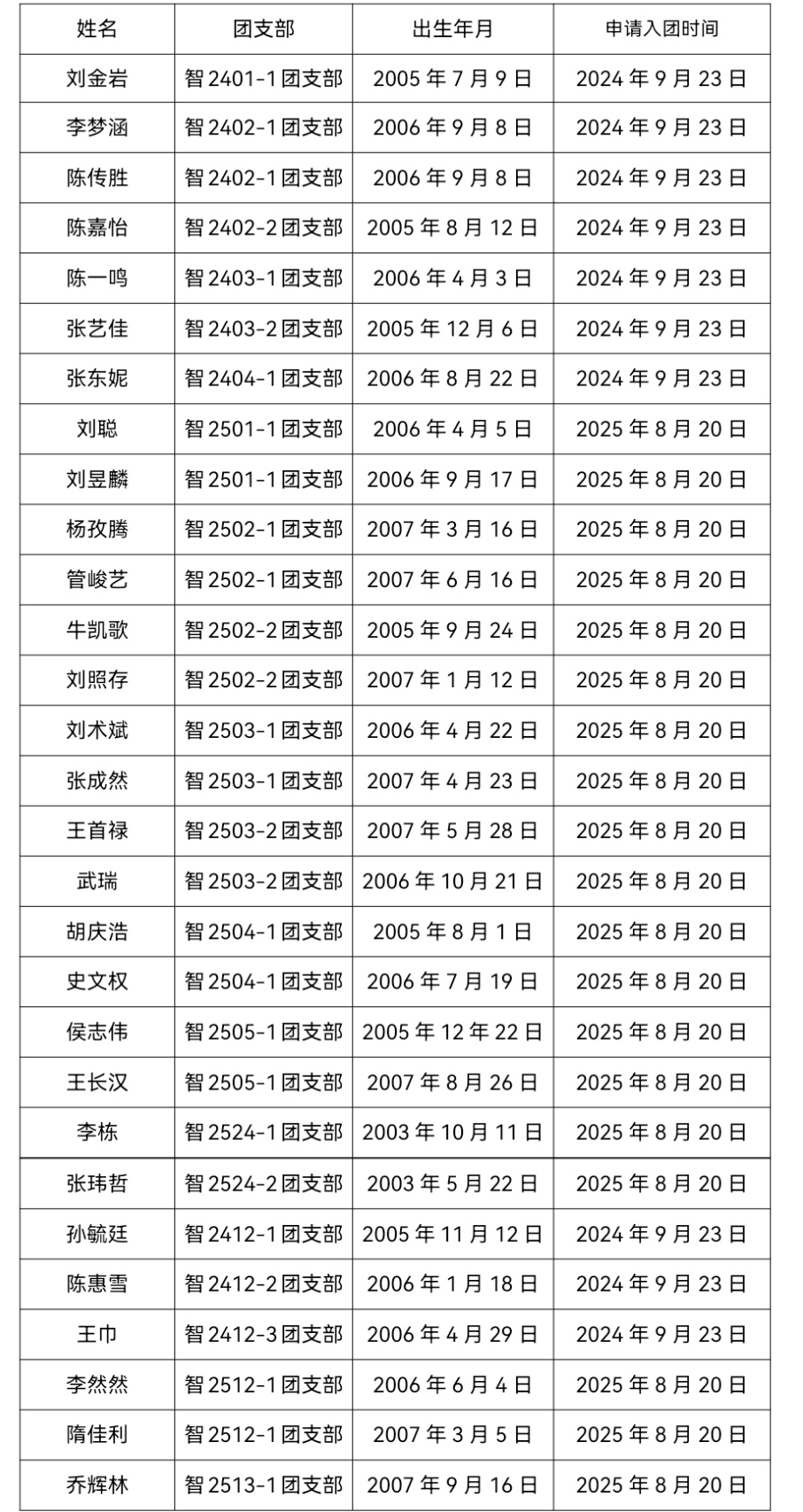 2025年12月21日,经(群)团组织推优,支部委员会于2025年12月22日讨论,团总支于2025年12月23日研究确定刘金岩等同志为团员发展对象。根据团员发展工作要求,现将有关情况予以公示,接受群众监督。