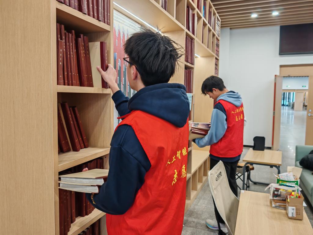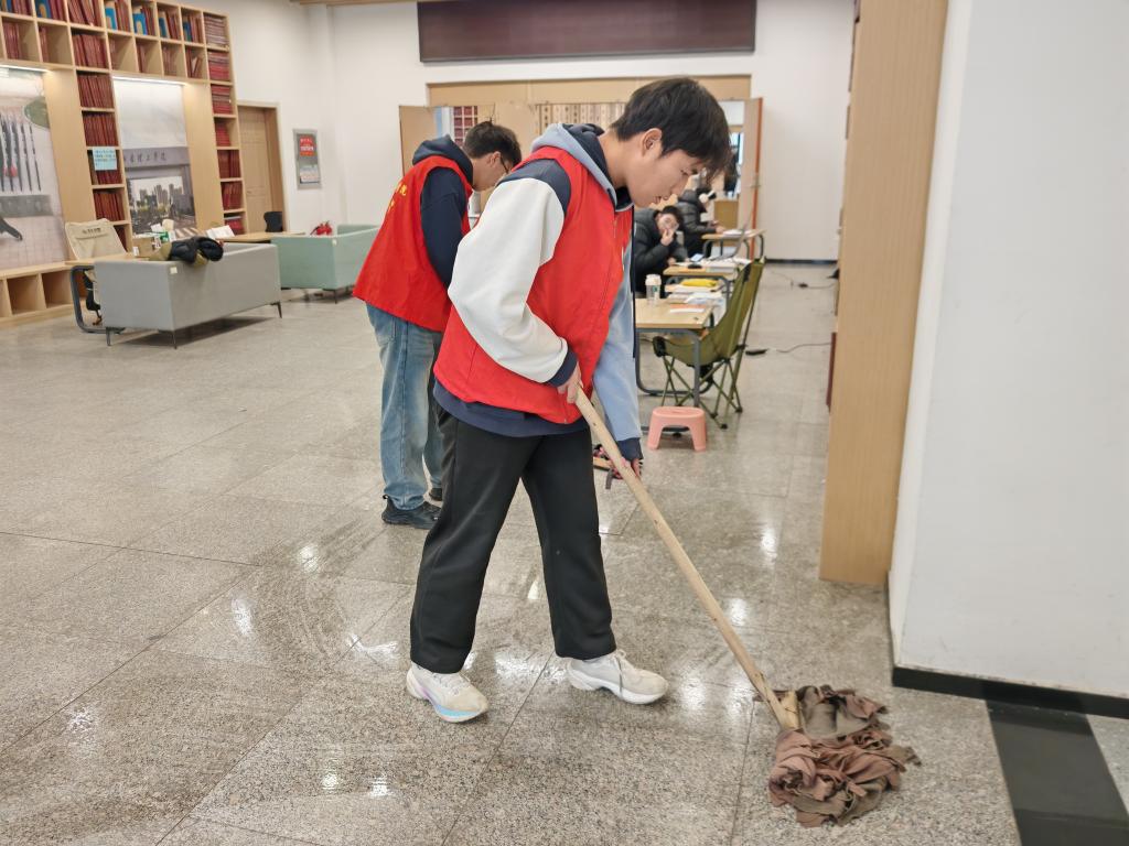 为营造整洁有序的学习环境,公司社会实践团队深入学校图书馆开展专项志愿服务。活动中,身着红色志愿者马甲的队员们有序分工,在图书阅览区化身“图书管理员助手”,对照图书编号系统,将错位摆放、随意搁置的书籍逐一精准归位,确保检索便捷;还在公共区域手持清洁工具,对走廊、阅览桌椅、窗台角落等进行全方位,细致清理卫生死角。队员们用忙碌的身影为全校学子打造了更舒适便捷的学习阅览空间,也在实践中体会到图书馆管理工作的不易,进一步增强了爱护校园公共设施、尊重劳动成果的责任意识。