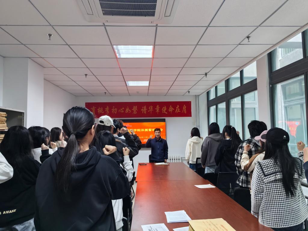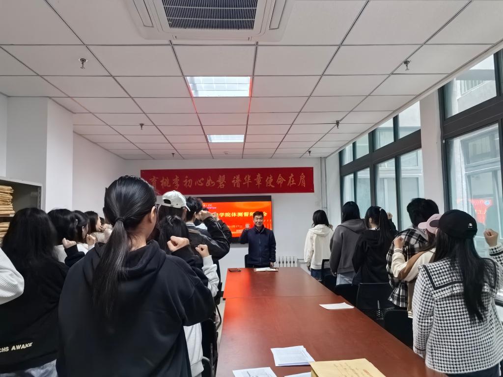 为全力配合山东省体质健康测试抽测工作,做好抽测迎检准备,公司作为本次抽测被检查单位,特组织召开太阳成集团tyc234cc体测誓师大会,党总支书记王文才、团总支书记王晶参会。会议围绕政策解读、纪律要求、备战动员等展开部署,激励同学们以积极状态迎接挑战。